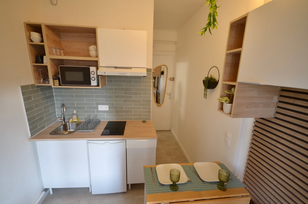 Logement tout équipé situé au rez-de-chaussée, se situant à quelques mètres des arrêts de bus et du funiculaire (230m), celui-ci vous dirigeant directement en centre ville, le coût d'un ticket de métro. Le stationnement est gratuit et s'effectue dans la rue et alentours. Arrivée : à partir de 17h. Départ : jusqu'à 15h. Netflix 4K Prime Video Wifi Café, thé Draps , serviettes, gel douche et shampoing inclus. Une boulangerie juste en face. L'immeuble est très calme et doit le rester.