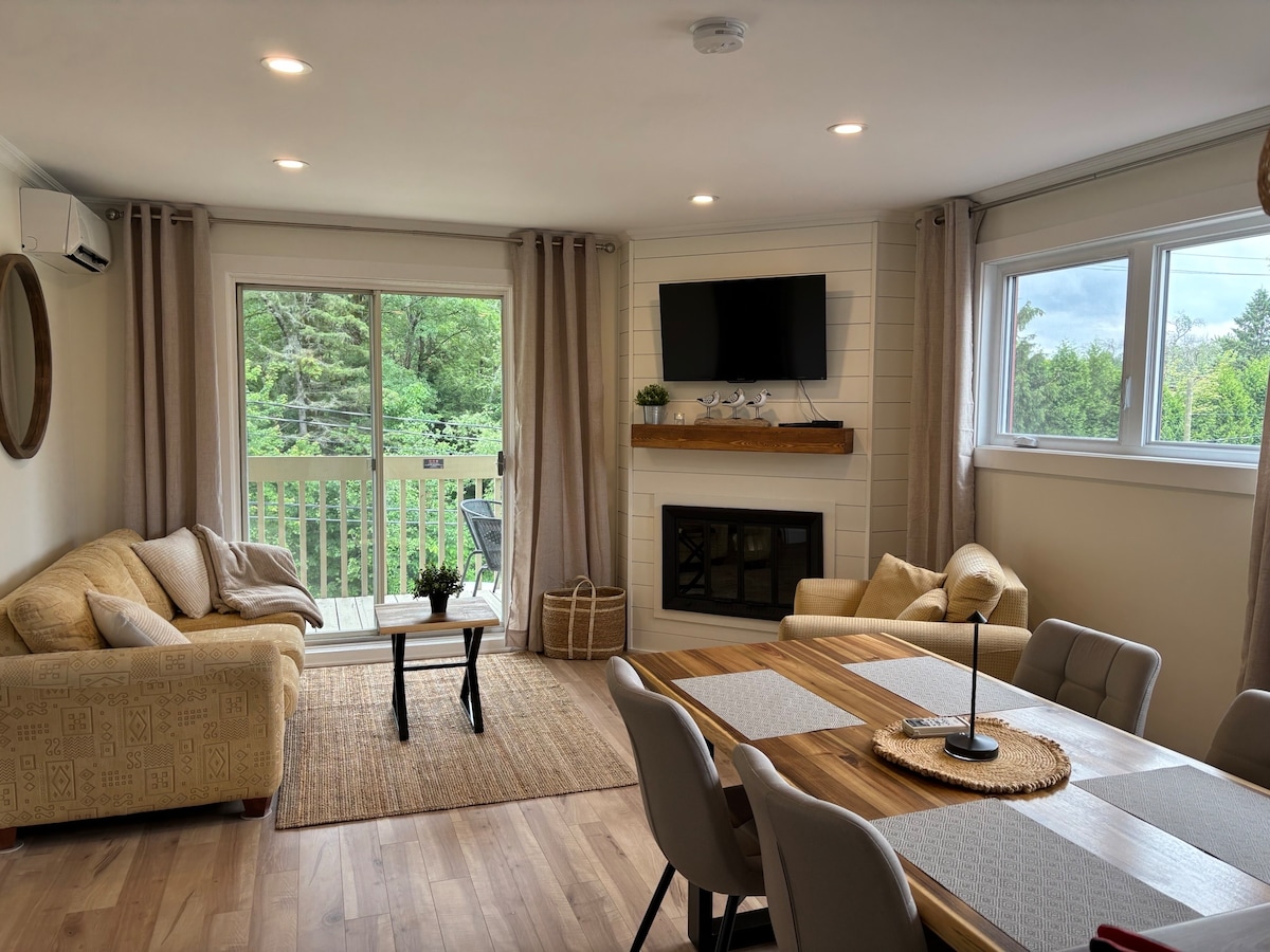 Détendez-vous et relaxez dans ce chaleureux et élégant condo. Vous profiterez de tout le confort et les commodités nécessaires pour passer un agréable moment en cocooning avec vue sur la nature. La cuisine comporte tous les équipements nécessaires pour concocter de bons petits plats. Pourquoi pas une bonne fondue, une raclette ou un petit plat à cuisson lente avec la mijoteuse programmable. Bienvenue également aux gens qui veulent travailler en toute quiétude (bureau aménagé et Internet inclus)