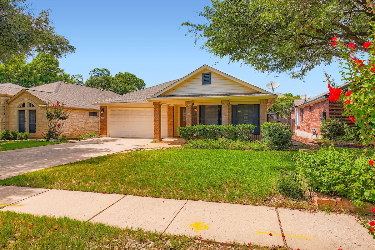 Para disfrutar de paisajes pintorescos y la hospitalidad de Texas, visitá Leander/Cedar Park y alojate en esta casa de 4 dormitorios y 2 baños. Dos áreas de estar separadas. Mucho espacio para tu grupo. Estarás encantado con la ubicación residencial, ya que la casa se encuentra a menos de 10 millas del lago Travis y a 23 millas del centro de Austin. ¡Esta casa ofrece una cocina completa y un espacio de entretenimiento al aire libre para todos ustedes! A minutos de Haute Spot, HEB Center y The Crossover.