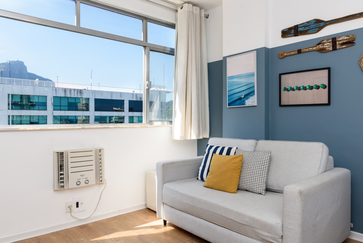 Well-decorated bedroom and living room with a prime location in Leblon! • Incredible view of Christ the Redeemer and Lagoa Rodrigo de Freitas • Luggage storage available in the building • Air conditioning in the bedroom and living room • Less than 50m from the subway • Playground and sports court in the building • 24-hour doorman • Wi-Fi and smart TV • Self Check In