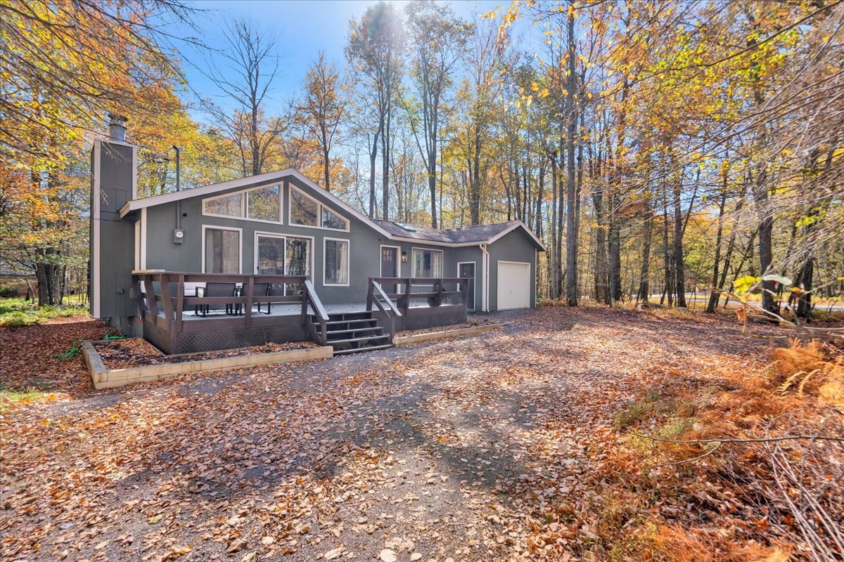 Experience serenity this spring at The Hive, a charming, nature-inspired cottage in an amenity-filled community with 3 lakes, indoor pool, recreation center and 3 playgrounds. This home features a well-equipped kitchen, scenic wraparound deck , and Big Bass Lake a 3 minute walk. Enjoy nature in all its glory with miles of hiking and biking trails, nearby state parks, Kalahari, Camelback, Great Wolf, Scranton and local farms. Wind down each evening by the firepit for an idyllic Poconos escape.