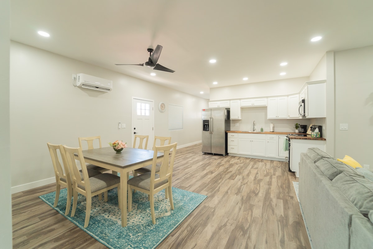 Con una ubicación céntrica en East Valley, cerca de todas las formas de transporte, eventos, ASU Tempe/ASU Polytechnic Mesa Campus, el centro de Gilbert y el sistema de tren ligero Valley Metro (0,4 millas). Espacio habitable privado con entrada independiente y patio aislado. Baño grande con luz natural, ducha de azulejos con cristal y amplio armario. Cama tamaño queen con cocina americana, nevera, sofá, wifi, cable y sistema de bomba de calor silencioso. A poco más de 20 minutos en coche del casco antiguo de Scottsdale, el centro de Phoenix y los aeropuertos PHX y AZA.