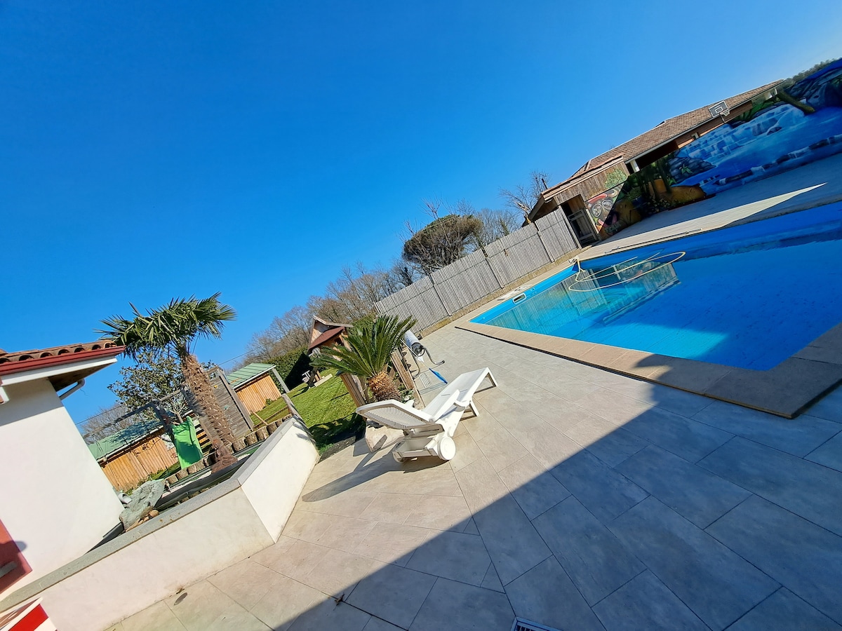Domaine des Sylenes , casa de huéspedes: piscina , parque arbolado de 7000 m2 cerrado. Autopista A63 15 minutos, TGV 4 minutos. Dax, Océano. Muchas actividades de ocio cercanas. Correo electrónico, restaurantes, tiendas de comestibles a 1-3 km. Te recibimos, para una estancia agradable: ¡Desayuno! Suite familiar 4 huéspedes: 2 habitaciones, ropa de cama nueva 1 King Size, 2x1 persona. Grandes salas de estar (sala de estar de 55 m2, comedor), terrazas, parque infantil desinfección Covid , VMC, gel hidroalcohólico disponible , posible máscara