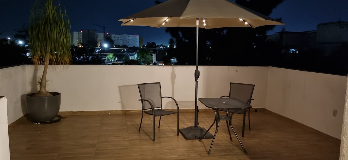 Nuestra HABITACION MAS PEQUEÑA 1 persona, ideal solo para dormir , baño privado con cama matrimonial. Terraza con vista al templo expiatorio de noche vista es muy bonita con acceso autónomo a media cuadra de la calle madero en donde encontrarás bares y restaurantes. A la vuelta del templo expiatorio ,pizza a media cuadra, oxxo, zona agradable Estacionamiento Gratuito a 2 cuadras y media del Airbnb lunes a sábado. DOMINGO SOLO SE ABRE A LAS 11:00am hora de check out para sacar tu vehículo