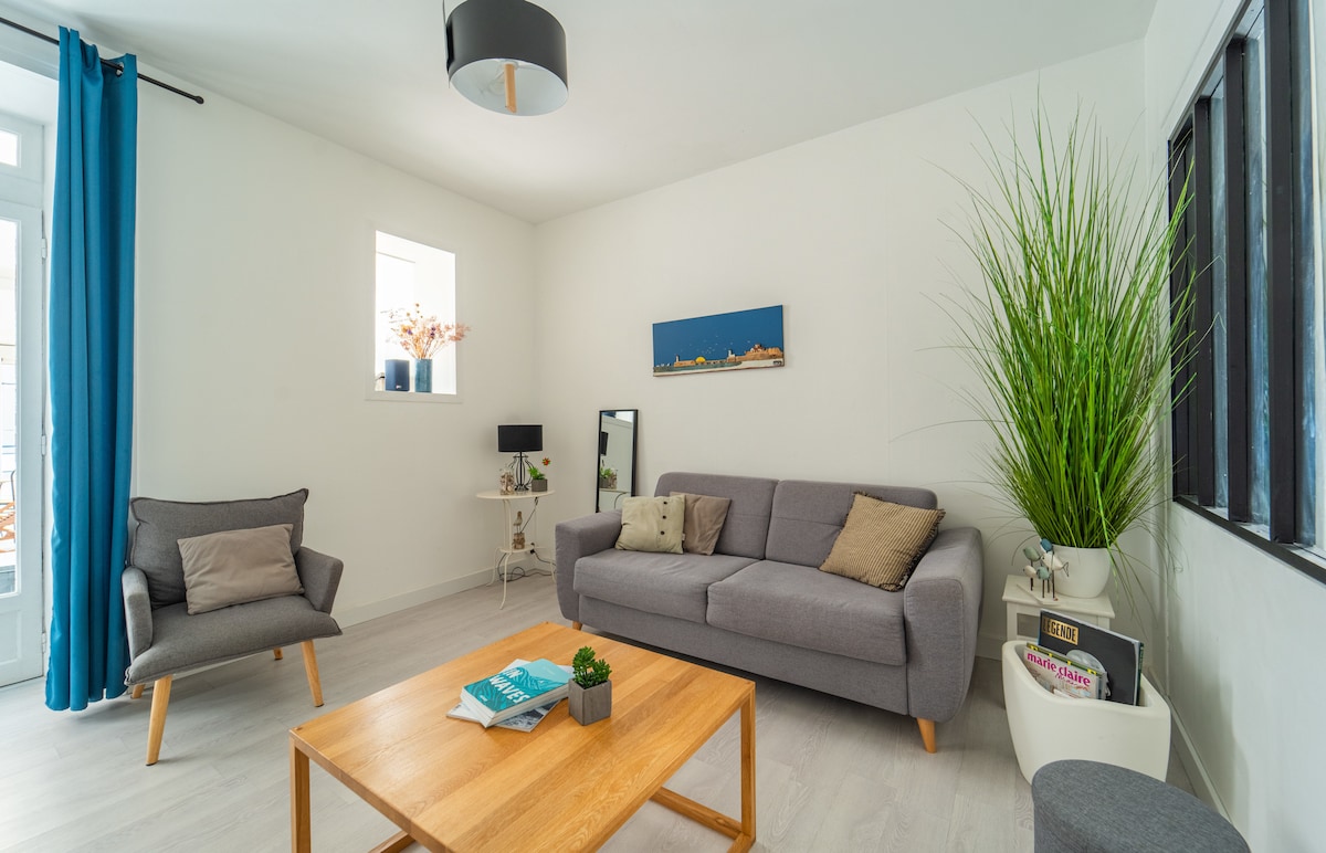 Acogedor apartamento situado en el corazón de Les Sables d'Olonne en el barrio histórico de Passage. Acceso directo a 20 metros de la Gran Playa y a las tiendas del centro de la ciudad. ¡El Apartamento Grande Plage está diseñado para alojar a 2 viajeros y ofrece una verdadera proximidad al océano! ¡Una estancia encantadora garantizada con la playa justo al lado! Podrá llegar de forma autónoma, se proporcionan toallas y ropa de cama y no se cobran por separado. También tendrá acceso wifi fibra Freebox ilimitado.