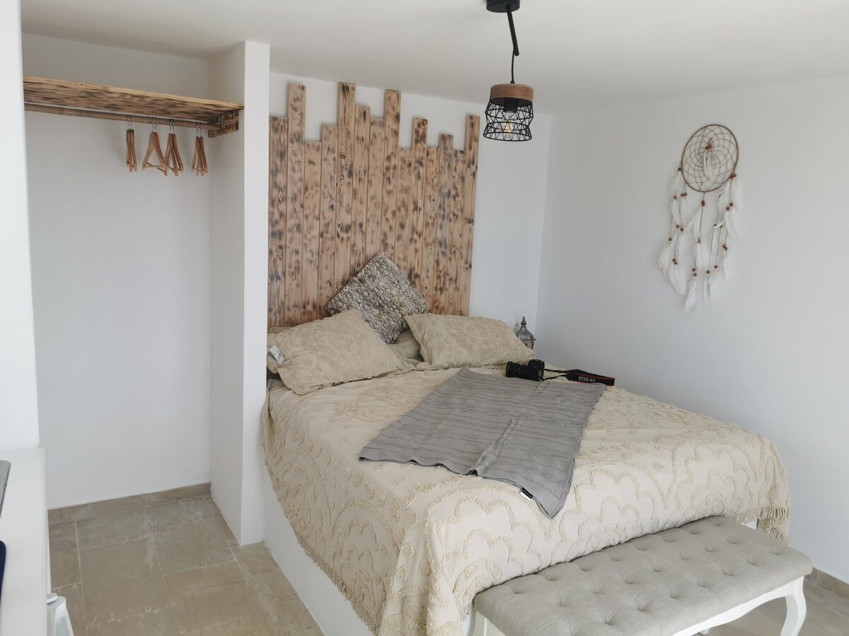 Habitación privada con terraza y vistas al mar en la isla de Cunda