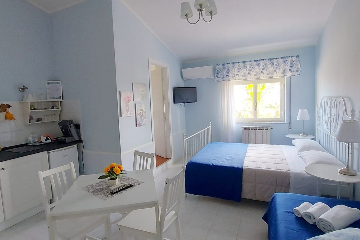 Un apartamento de estilo mediterráneo escondido en un barrio tranquilo en el centro de Taormina. Estacionamiento gratuito en el lugar, aire acondicionado, WIFI, toallas y ropa de cama incluidas. Entrada privada con jardín y un interior recién renovado. Ubicación perfecta en el centro histórico que es tranquilo pero a 2-5 minutos a pie del distrito comercial, desde el centro de la calle principal, el teleférico de playa y la estación de autobuses. Tu habitación estará disponible a partir de las 15:00 h. Si deseas llegar antes, con gusto te llevaremos tu equipaje con nosotros.