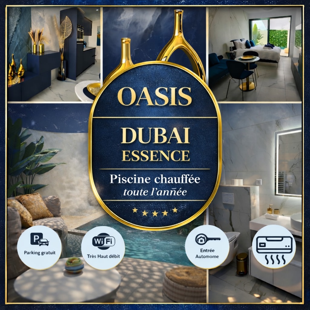 Bienvenue à Oasis Dubaï : suite premium avec terrasse privée et balnéo chauffée à 37°C toute l’année, équipée de jets massants et d’une cascade relaxante. Une véritable expérience spa, été comme hiver. Profitez d’une literie haut de gamme, d’une cuisine entièrement équipée, de la fibre, d’une TV connectée, du linge, serviettes et peignoirs inclus. Idéalement située au cœur de Pérols, proche commerces et tram, à 1 km de l’Arena et du Parc Expo, parfait pour séjour romantique ou déplacement pro.