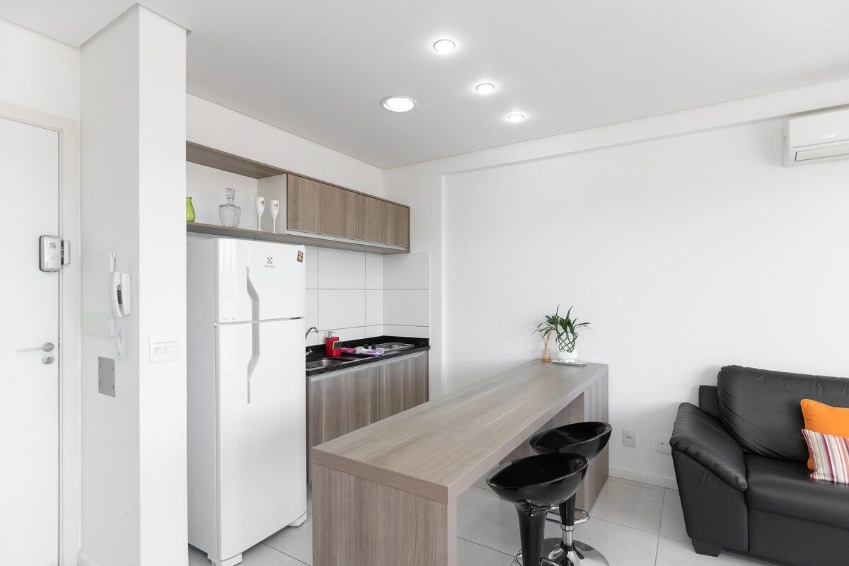 Studio moderno de 32m² no Walk Brigadeiro, ideal para sua estadia em Curitiba. A cozinha é completa e funcional, perfeita para preparar refeições. A sala de estar oferece um sofá cama quuen super confortável. Cama de casal padrão e banheiro conta com chuveiro a gás. Para completar, uma varanda agradável para desfrutar o ambiente. Tudo para garantir conforto e praticidade durante sua hospedagem!