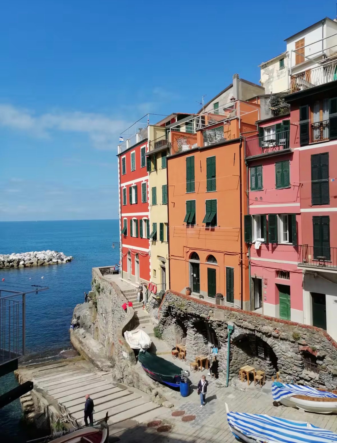 Luminoso apartamento de 70 metros cuadrados recientemente reformado, en el corazón del puerto turístico de Riomaggiore, a pocos pasos del mar. El apartamento, con aire acondicionado, dispone de una bañera de hidromasaje de uso privado con vistas al puerto deportivo, una cama «king size», un sofá cama para dos personas, dos televisores de pantalla plana con canales internacionales, una zona de cocina, conexión wifi y caja fuerte. El baño cuenta con una amplia cabina con dos duchas, artículos de aseo y secador de pelo.
