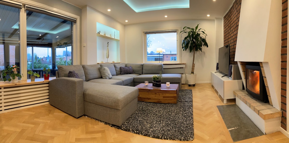 Fantástica casa a un par de metros de Göta Älv en Trollhättan, donde se incluyen sábanas, toallas y limpieza de salida. La casa está a 3 kilómetros de una tienda de comestibles y a 5 kilómetros del centro de Trollhättan. A la vuelta de la esquina hay una reserva natural con "Edsvindsleden", que es una caminata increíblemente agradable. La casa tiene dos dormitorios, así como un sofá cama en una de las salas de estar, tres inodoros y una gran terraza con una escalera de baño si quieres refrescarte. La hora de salida se puede ajustar en función de los próximos huéspedes.