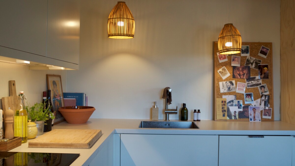 Nuevo y bonito departamento con una ubicación céntrica en una acogedora y tranquila zona residencial. El departamento forma parte de una casa unifamiliar con todo en un apartamento, y la casa está ubicada en el corazón de un camino sin salida. La zona es muy tranquila y agradable, pero aún así está a pocos pasos del centro de la ciudad. Tienes un departamento de unos 50 metros cuadrados que contiene un dormitorio, amplia sala de estar con cocina americana, sofá cama y TV grande, así como baño y lavandería privada.