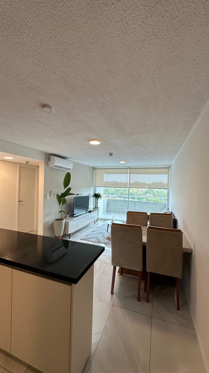 Departamento súper equipado en zona residencial, con balcón y parrilla, hermosa vista y amenities premium: - Piscina con solarium - Piscina climatizada - Sauna - Gym en altura - Rooftop + Quincho - Laundry - Seguridad 24hs - Cochera Excelente ubicación: - A 7 minutos del Eje Corporativo, Shopping del Sol y Paseo La Galería - A 10 minutos de la Costanera y el Puente Héroes del Chaco - A 15 minutos del Aeropuerto Silvio Pettirossi Cuenta con Wi-Fi, Smart TVs y colchones firmes de alta densidad