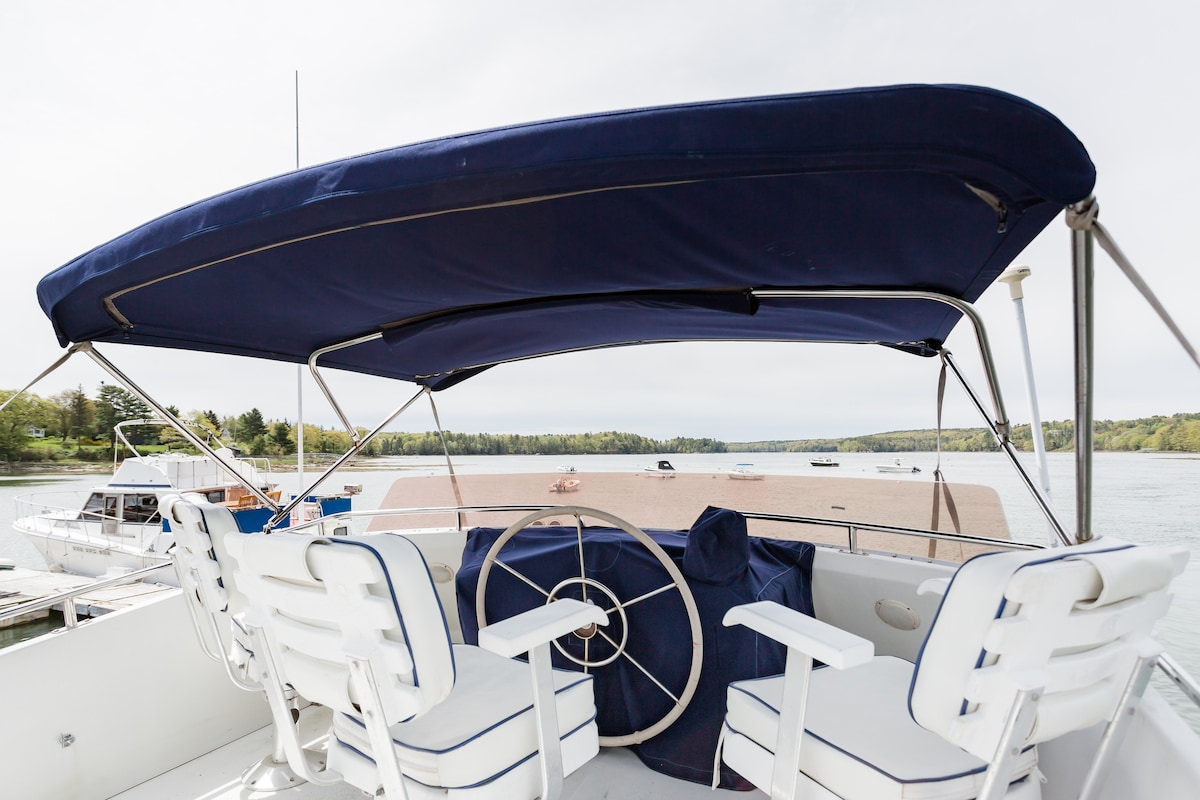 With warm wood interior, Nebi has the comfort of a home and a 360-degree view of the tidal Damariscotta River. Experience a unique Maine adventure, swim right off the boat, or paddle the inclusive kayaks downriver to view everything from seals to ospreys and oyster farms. The quaint twin villages of Damariscotta - Newcastle are a 2-minute stroll away from the private marina with charming restaurants, galleries and a short drive to gorgeous lighthouses, walking trails and beaches.