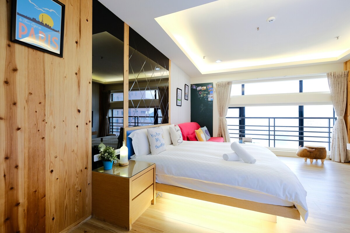 Suite doble independiente en Xingxinglu/Estación de Formosa 1 min/Mercado nocturno de Liuhe/Estación de tren de Kaohsiung con ventana