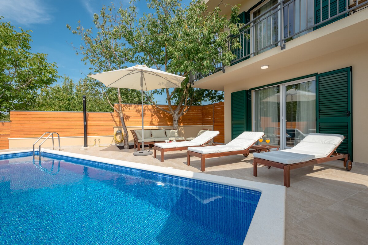 Modern villa located in the peaceful village of Liska, just 25 minutes from Split and the sea, with fast highway access only 5 minutes away. Ideal for guests seeking nature and a perfect base for exploring Dalmatia. The villa offers modern interiors, a terrace, heated pool, parking, free Wi-Fi, and plenty of activities including a children’s playground, basketball, football and badminton.