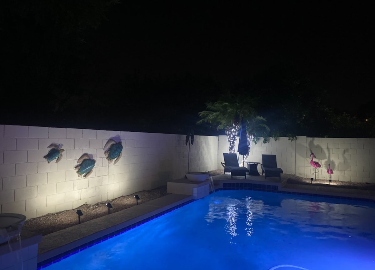 Hermosa y tranquila con piscina, mesa de billar y 2 camas king