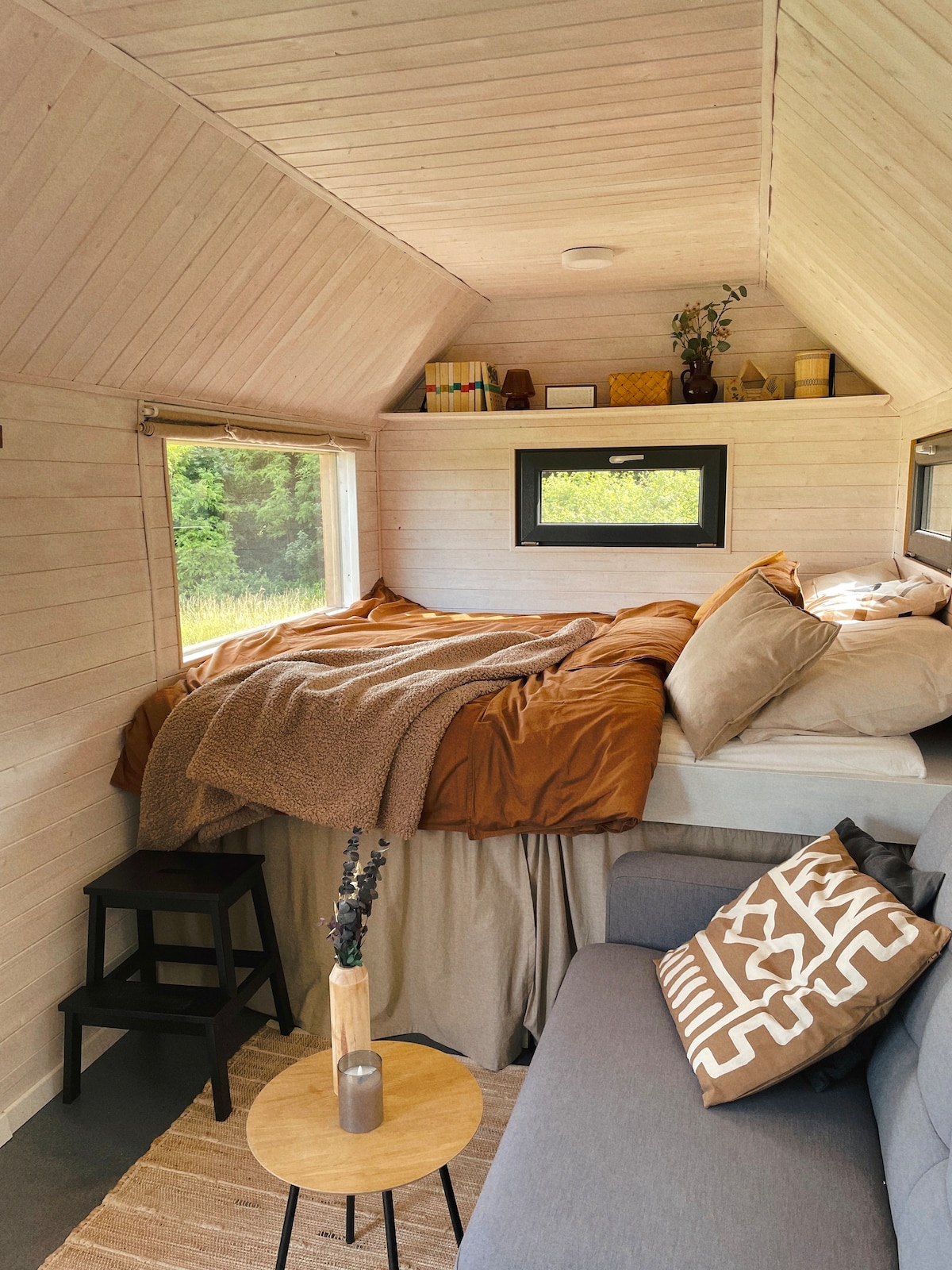 TREEHOUSE is installed on four adult oaks. A wooden bridge leads directly to the terrace with a view of the surrounding trees. The house is connected to the electricity grid. Water is supplied in containers and is used for hand washing and basic hygiene. Inside our treehouse there is a chair and a sofa bed, basic kitchen equipment, electric kettle for water, plates etc. Dry toilet is located 15m from the treehouse. Attic is reserved for sleeping (2 people). Sofa bed is downstairs.