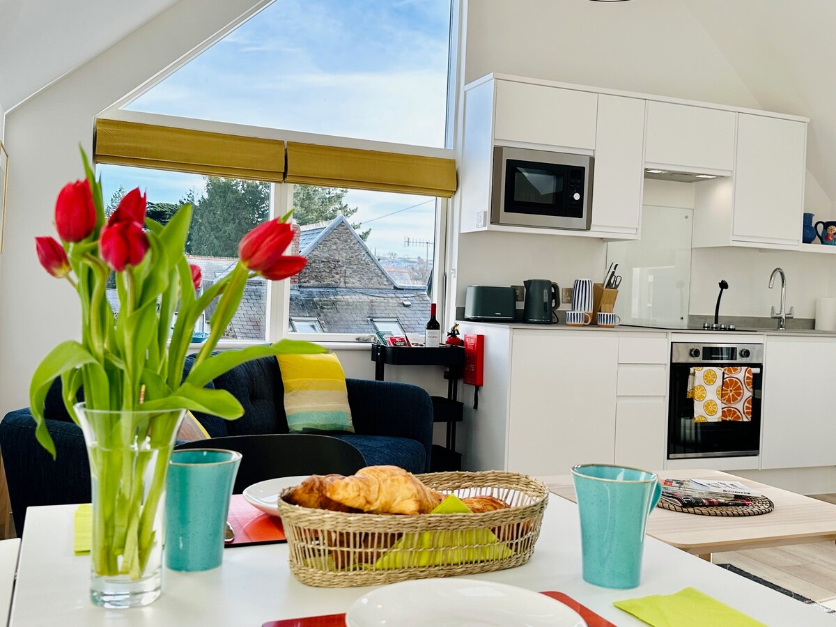 Enjoy a beautifully renovated loft conversion with private access in the heart of historic Totnes just 7 minutes walk from the railway station Visit this culturally vibrant town with its Norman castle, traditional weekly markets, climate hub, independent cinema and many independent cafes restaurants shops & pubs: www.airbnb.com/slink/u7YFDN4Y Enjoy stunning walks along the river Dart from our front door or visit beautiful beaches or Dartmoor nearby Ideal for couples, young families, friends