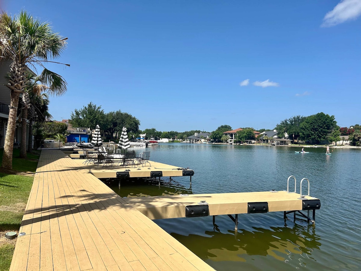 ¡Su búsqueda ha terminado! Encontraste la perfección en Horseshoe Bay. Casa adosada frente al este frente al mar con doble terraza, pesca; todo en el corazón de HSB en Island Dr... ubicado en Texas Hill Country. No solo es nuestra casa frente al lago; es una unidad “orientada al este” que te permite usar la terraza por la noche durante todo el verano sin el sol abrasador en tus ojos o el calor abrasador que hace que muchas cubiertas sean inutilizables durante los meses de verano. ¡Relájate en la piscina y el jacuzzi estilo resort!