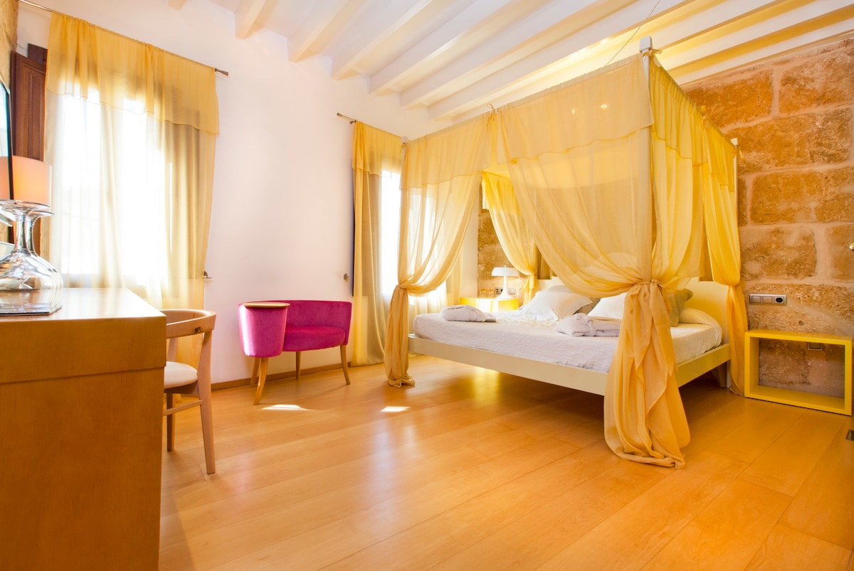 Habitación doble de 22 m2 con cuarto de baño completo en suite. Completamente privado, con entrada independiente. Disfrute de su alojamiento privado en el corazón de la ciudad con desayuno incluido. Alojamiento formado por dos edificios completamente reformados con los materiales tradicionales de la más alta calidad, conservando el carácter del casco antiguo de Palma y con las prestaciones del siglo XXI. Una experiencia que seguro le enamorará!