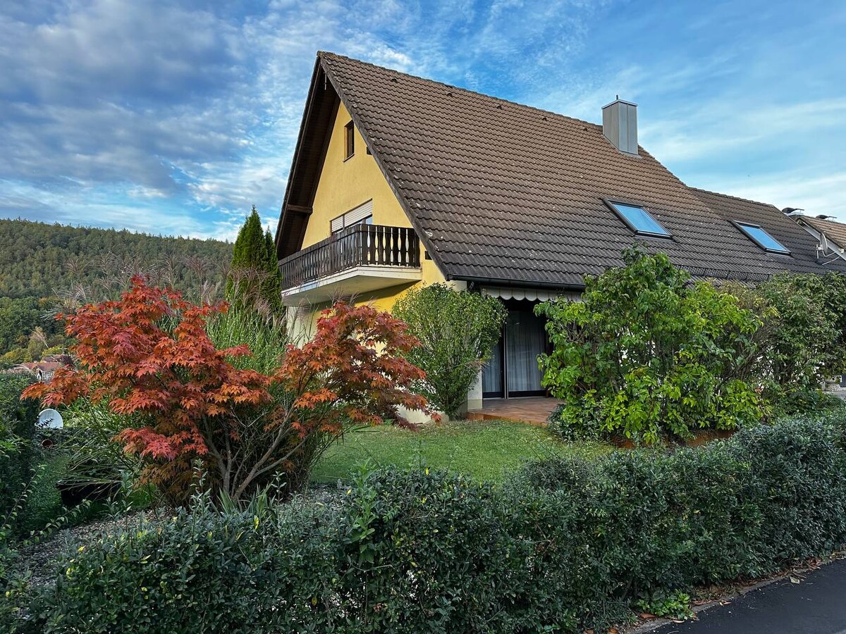 ¡Te damos la bienvenida a nuestra vivienda! Escapate de todo y encontrá un refugio acogedor con nosotros, lejos del ruido de la ciudad. Nuestra pequeña y encantadora casa de huéspedes es el lugar ideal para relajarse y recuperar fuerzas. Ubicado en el corazón de la hermosa zona de Main-Spessart, nuestro pueblo es una gran base para tus aventuras. Después de un día lleno de eventos, encontrarás la relajación perfecta en nuestro jardín con sauna y piscina.