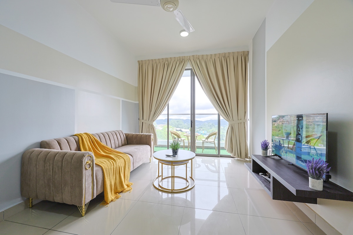 Welcome to our brand new cozy apartment with 3 bedrooms and 2 bathrooms. Each room featured a premium hotel bed with luxurious linens, a modern dining area & kitchenette. It can comfortably accommodate up to 6 guests. Our location is an unique place to stay with hassle free from traffic jam due to peak season. It is fit for small family, couples or friends who looking forward to rest and breath of fresh air. Our unit is strategically located opposite of Tea Plantation, it is just 1 mins walk.