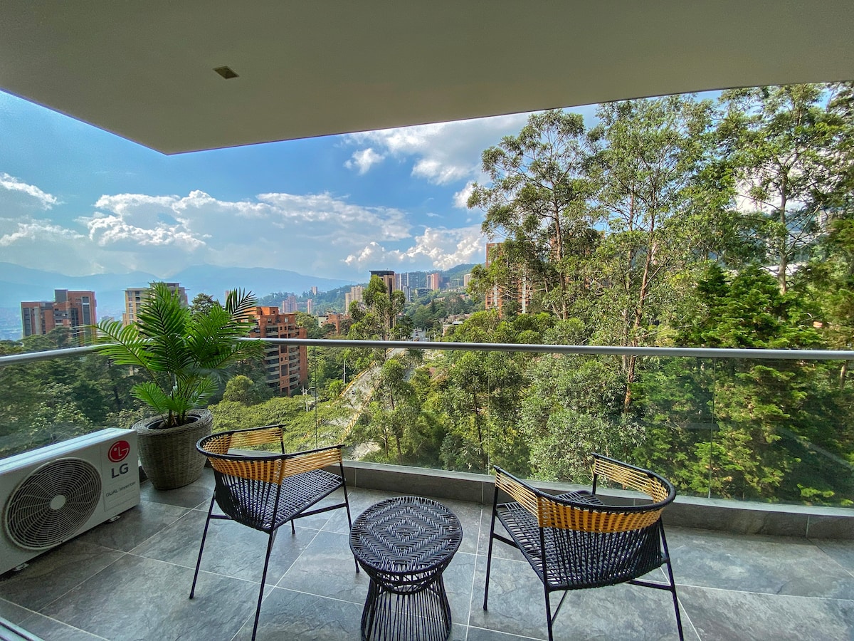 Excelente apartamento con una terraza increíble en Medellín, ubicado en el Poblado solo a 5 minutos caminando del centro comercial en tesoro y a 8 minutos en taxi de Provenza. Con internet rápido de 400 mbps WIFI y Ethernet de 800 mbps. NOTA: EL EDIFICIO AÚN ESTÁ EN DETALLES FINALES DE CONSTRUCCIÓN, POR LO TANTO, PUEDE HABER RUIDO, POLVO O FALLAS EN EL SERVICIO, NUESTRA TARIFA AHORA NO TIENE TARIFA DE LIMPIEZA Y ESTÁ MÁS BAJO QUE EL MERCADO DEBIDO A ESTOS INCONVENIENTES.