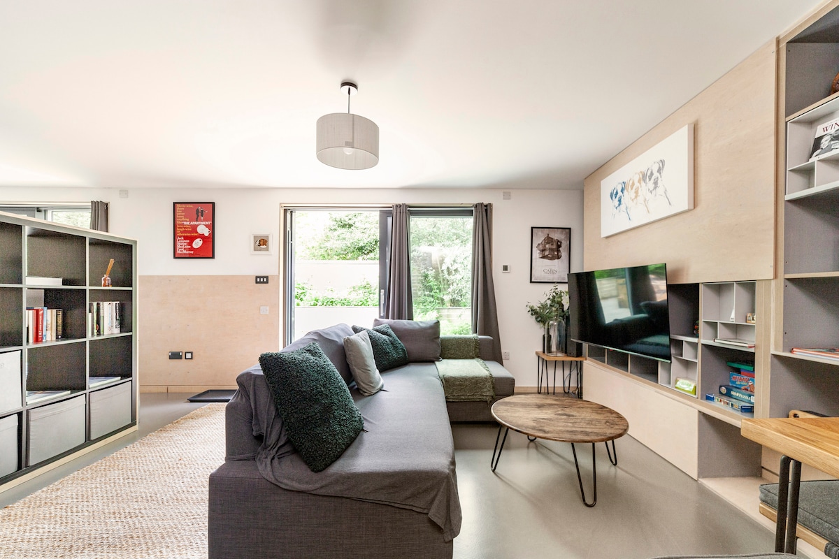 Damos la bienvenida a los huéspedes a nuestra exclusiva casa estudio independiente diseñada por un arquitecto. Un dormitorio doble con baño privado. Salón grande con cocina. El sofá del salón se convierte en una cama para una persona. (Nota: Hay una tarifa adicional de ropa de cama por el uso del sofá cama: 15 £ por una noche, 30 £ por 2 o más noches). Puertas plegables de apertura completa. Cuna disponible (por favor, trae un saco de dormir para bebés o algo apropiado). Carga de coches eléctricos disponible (20-25 £) para carga completa.