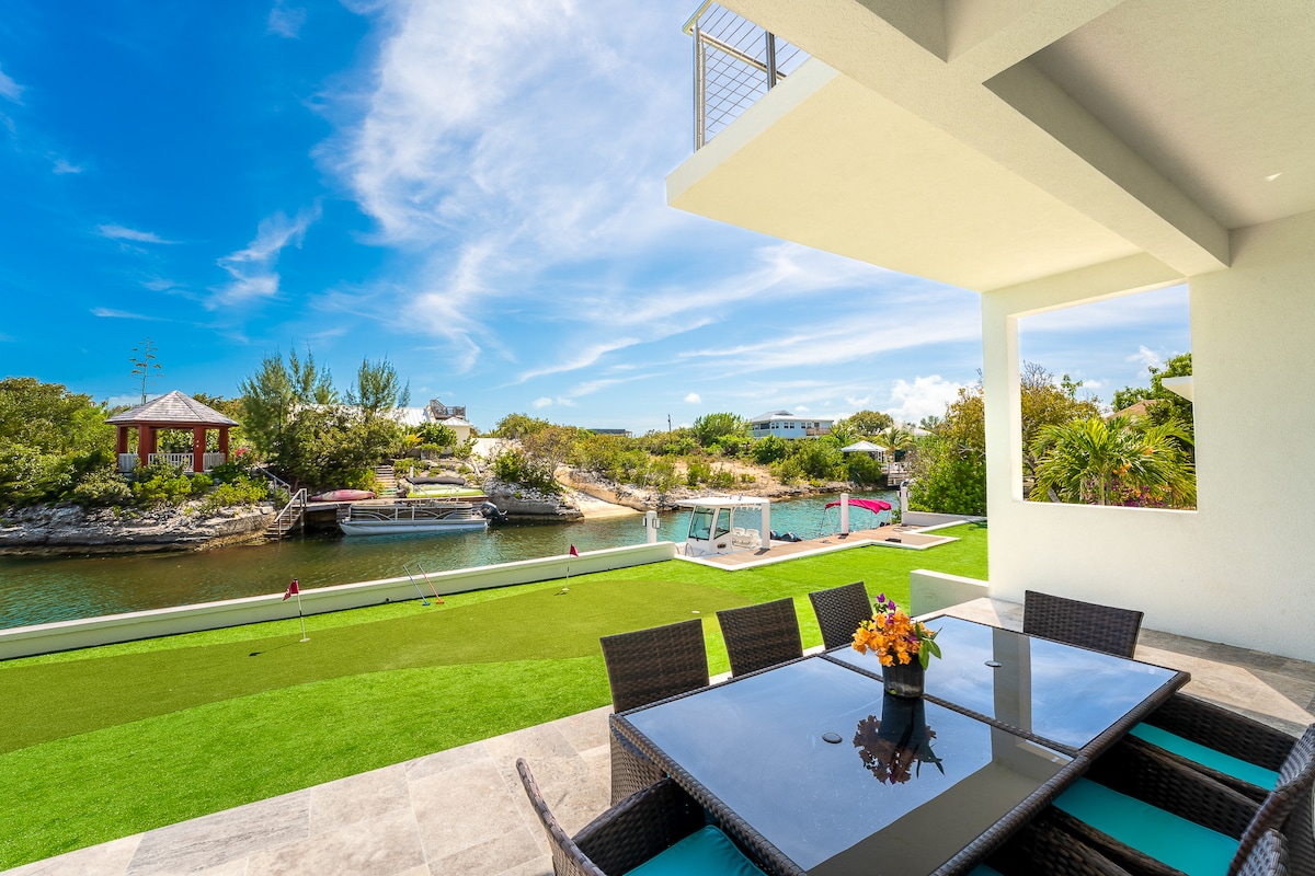 Esta impresionante villa de 3 dormitorios y 2 baños está situada en un barrio aislado, tiene vistas panorámicas al mar, al lago y al canal; disfruta de la esencia de la vida isleña. Está a 7 minutos en coche de GraceBay Beach o disfruta de un baño en la piscina. La villa cuenta con unidades de aire acondicionado, lavadora/secadora, conserje para ayudar con comestibles, excursiones, etc. Se ofrecen opciones de alquiler de coches, junto con los servicios de un galardonado chef privado famoso, que puede preparar comidas antes de la llegada y un desayuno/brunch flotante en tu piscina.