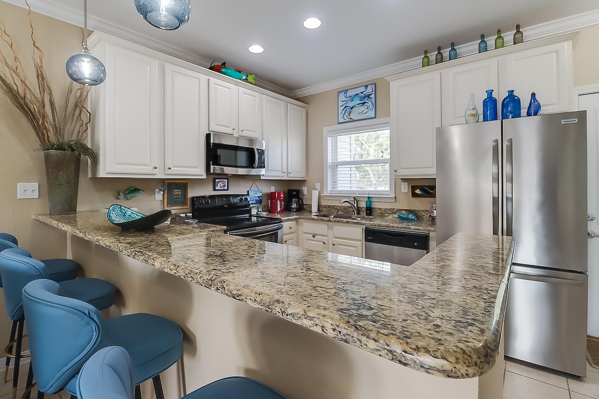 THE GULF COAST RETREAT Beautiful 1-story home (built 2017), no stairs, just 500 yards away from the white, sandy beaches of the gulf coast. Spacious living area with dining area & modern kitchen w/ granite countertops. 10-ft ceilings for comfort. Privacy fence & rear porch with seating and grill. High-speed wireless internet. Suitable for short-term stays, as well as for snowbirds; up to 4 adults, 3 children. Positive feedback from AirBnB is important. For special requests contact host.