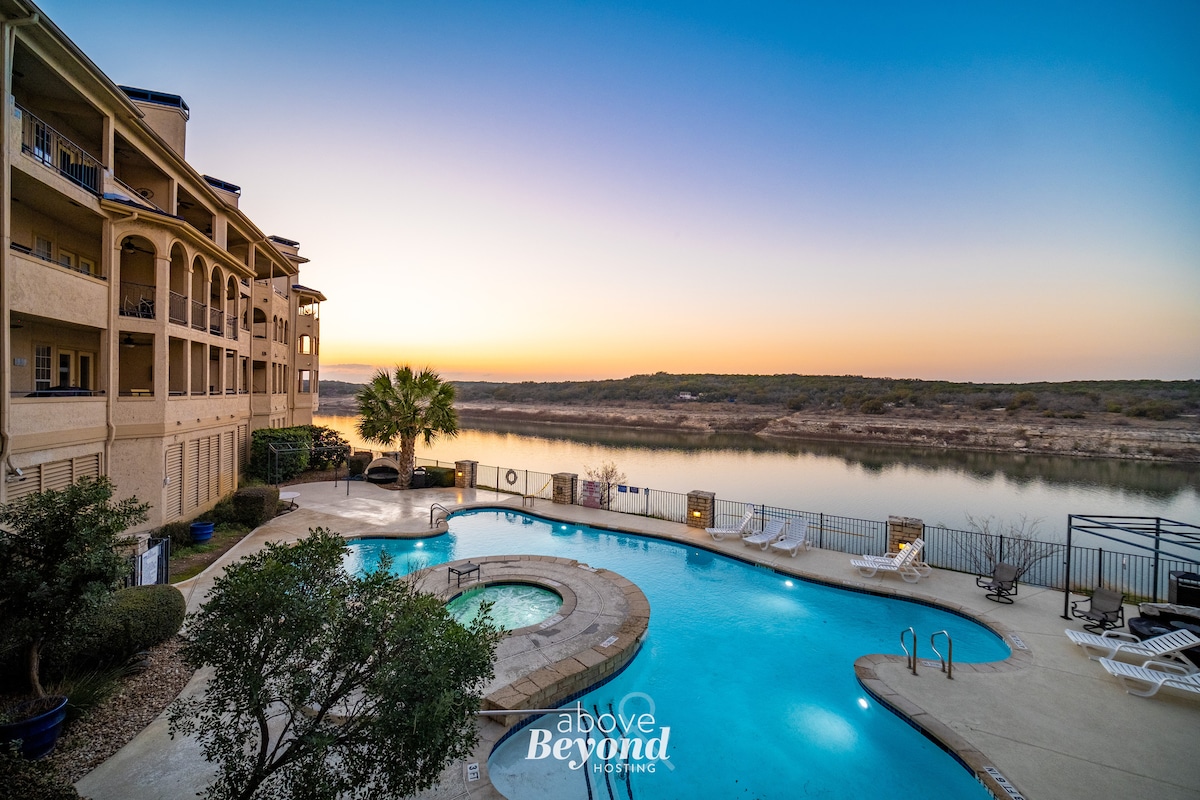 ¡Sé el primero en relajarte y relajarte en nuestro lujoso retiro frente al lago en el hermoso lago LBJ! Servicios para su disfrute, que incluyen acceso a la playa y al lago, dos piscinas, cancha de voleibol de arena, parque infantil, cancha de tenis, múltiples parrillas para barbacoa, áreas de comedor al aire libre y muelle de pesca. Trae tus barcos y motos acuáticas para disfrutar de un emocionante día de pesca o tubing. Ya sea que busques aventura o serenidad, nuestro escondite tropical ofrece el telón de fondo perfecto para un retiro inolvidable junto al lago.