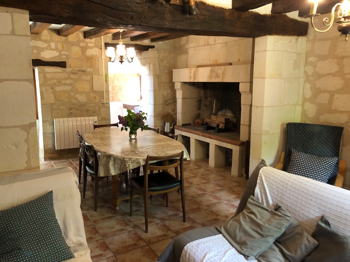 Entre Saumur y Doué la Fontaine, venga a descansar en el campo, en un entorno troglodita, en medio de las flores. Región muy turística: cerca del Bioparc de Doué la Fontaine, trogloditas, viñedos, castillos. El Cuadro Negro de Saumur, los vinos espumosos, orillas y paisajes del Loira, pueblos con encanto. Estaremos encantados de recibirle en nuestra casa de campo, una casa antigua de 1824 (semi-troglo) de piedra de toba completamente renovada.