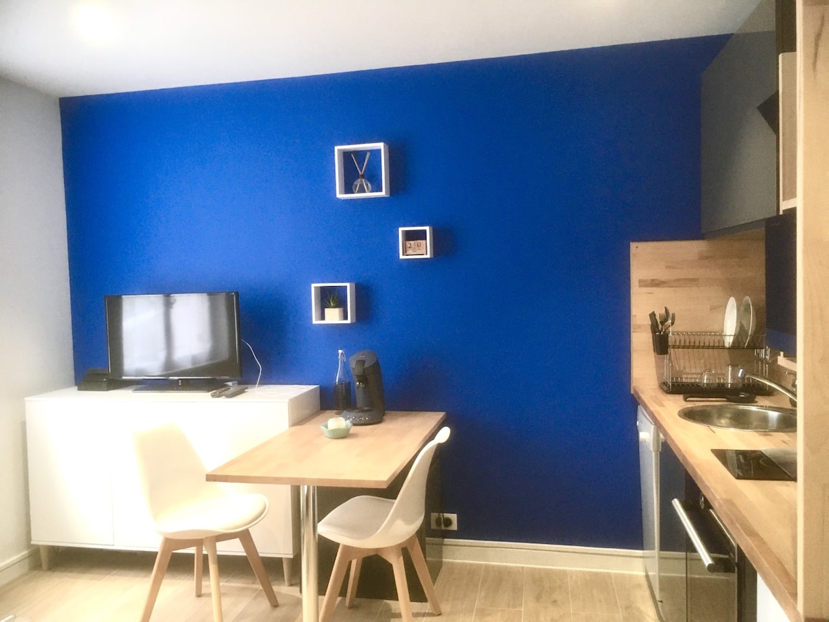 Bonito estudio reformado en 2022 y totalmente equipado. Ideal para darle la bienvenida a un pequeño coqueteo en pareja, para un viaje de negocios o simplemente para visitar Saumur y sus alrededores. Situado en la planta baja de un edificio del casco histórico, cerca del castillo y de la plaza de San Pedro. Calle tranquila y de sentido único. Plazas y parkings gratuitos cerca. También estará a dos pasos de tiendas y restaurantes. Dispondrá de fibra y wifi (gratis). Toallas y sábanas incluidas.