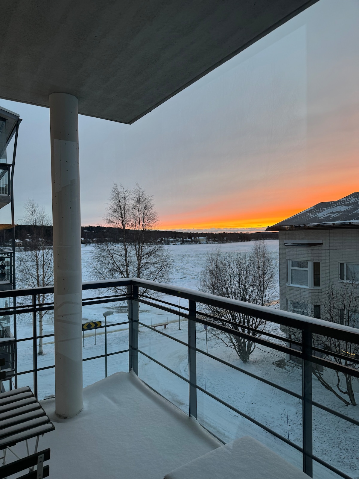 A modern scandinavian style apartment (39 sq.) close to Rovaniemi city center with nice river and city view. Our apartment has private entrance and can comfortably fit up to four persons. Ounasvaara hiking just around the corner, city center with many restaurants and attractions reachable by walking. Kitchen/sauna/shower/toilet/aircon/washing machine/air dryer/bed linen and towels included/TV/Chromecast/Free Wi-Fi/furnished private terrace/car heating socket.