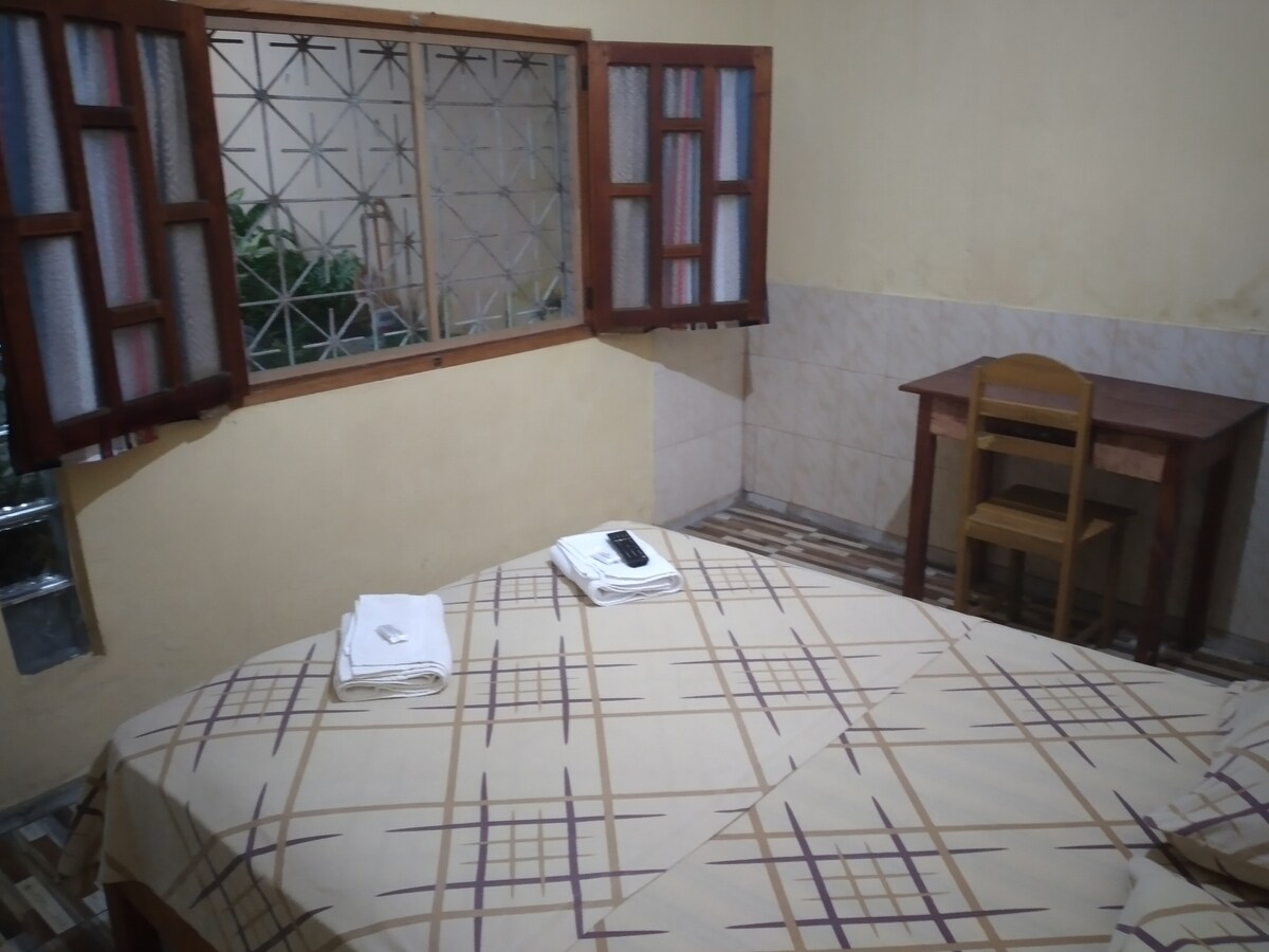 La casa se encuentra a 5 minutos del aeropuerto en motocarro, la habitaciòn es muy iluminada, tiene puerta y ventanas , baño propio. tiene patio para salir a fumar, para llegar a la casa tiene que caminar 2 cuadras de tierra firme, recomiendo lleven zapatos y ropa especial para la lluvia.