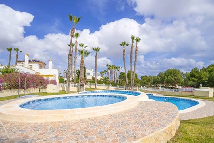 Bonito bungalow con vista al mar, completamente renovado y decorado con mucho cuidado. Todo el mobiliario es nuevo. Sala de estar, comedor, 2 dormitorios con armarios empotrados. 3 terrazas muy grandes, una magnífica piscina comunitaria. A menos de 5 min de dos de golfos internacionales “Villamartin Golf” y “Real Club Golf Campoamor” y a 10 min de los golfos “Las Colinas Country Club” y “Las Ramblas Golf”. A 3 km de la magnífica Playa de la Zenia y a 2 km del Shoping Center Zenia Boulevard.