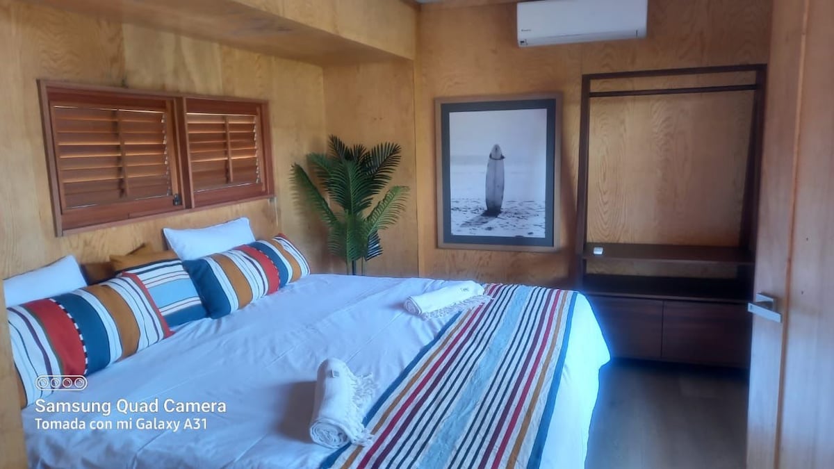 Lua es uno de los bungalows de Casa Macu; es ideal para parejas o viajeros que viajan solos. Descubre el paraíso del surf y la relajación en nuestra encantadora casa de playa de doble altura. Ubicada a solo unos pasos del surf break, esta joya arquitectónica combina la pasión por el surf con las comodidades modernas. Tiene un patio exterior con deck de madera y tanque de agua para refrescarse, relajarse o darse una sesión de baños de hielo.