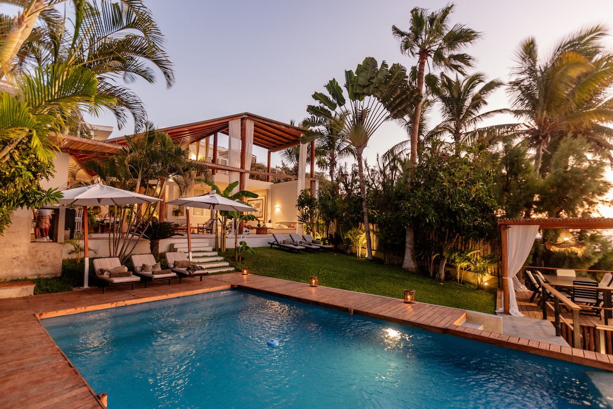 Vacaciones junto al mar rodeados de un amplio jardín tropical lleno de palmeras, en la tranquila zona residencial de Las Pocitas-Máncora. Con tu reserva, te enviaremos opciones de deliciosos menús de platillos locales y otros, que nuestro personal de servicio con gusto preparará. El horno de barro y la parrilla son los favoritos de nuestros huéspedes. No tienes que trabajar, nos encargamos de todo. La casa viene completamente equipada, ¡incluso con Kayak!