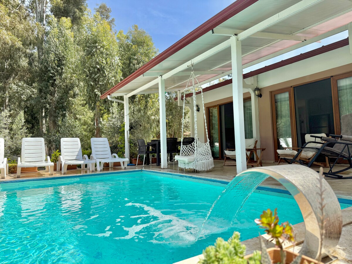 Bungalow único en un tranquilo y relajante jardín ORGÁNICO de naranja y limón. Relájate en un jacuzzi climatizado al aire libre. Por la tarde, paseos al aire libre por el mar en Akyaka a 10 minutos en coche de la casa, un paseo por el bosque de pinos justo detrás, paseos a caballo en el establo. En la noche puedes ver tu serie favorita de Netflix. Grossery y tienda de alcohol a 10 minutos a pie.