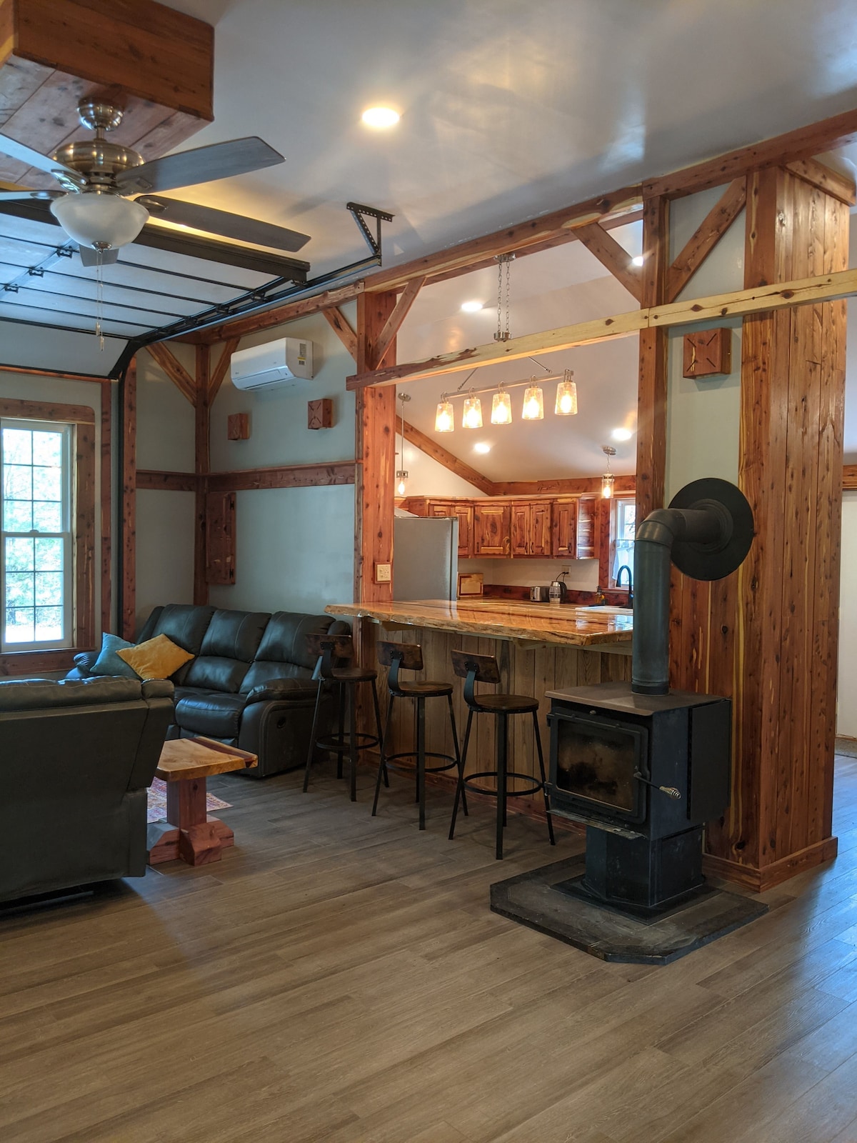 Linda casa de campo tipo estudio de pino en las montañas Alleghany.