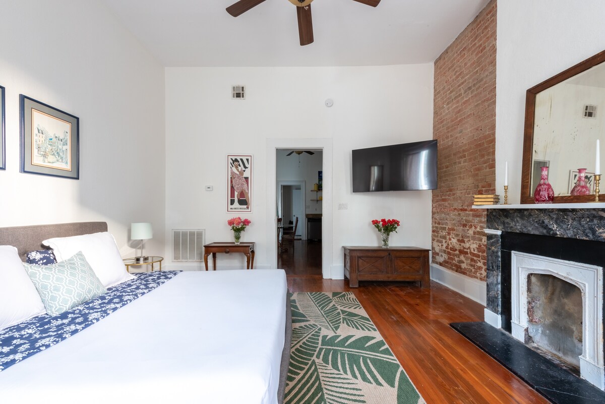 Relájate y disfruta de esta suite privada de alquiler boutique en una ubicación del barrio de Lower Garden, cerca de Magazine Street. Esta casa de campo criolla clásica totalmente renovada cuenta con techos espaciosos de 14 pies, suelos de pino, una cama tamaño king muy cómoda, muebles y arte recopilados de todo el mundo y chimeneas de ladrillo originales, con una sensación de elegancia moderna en todas partes. Perfecta para parejas y viajeros solos en Nueva Orleans que quieran experimentar la ciudad de una manera más local y lujosa. Tu reserva se confirmará al instante. Cada alojamiento está equipado con sábanas frescas, wifi de alta velocidad y elementos básicos de cocina y baño, todo lo necesario para una estancia excepcional. Podrás acceder a toda la unidad de 1 dormitorio/1 baño, al porche delantero y al patio. Estamos disponibles por teléfono, correo electrónico o la aplicación de mensajes de Airbnb. Si necesitas algo, no dudes en ponerte en contacto con nosotros. De lo contrario, te dejaremos disfrutar de tu estancia. La zona de Lower Garden District/Magazine Street es uno de los barrios más antiguos y de moda de Nueva Orleans, con una mezcla de casas centenarias, tiendas de moda y restaurantes. Camina hasta Magazine Street, el tranvía de St. tranvía de St. Charles, cafeterías y las hermosas casas del Garden District. Cerca del Barrio Francés, pero escondido del ruido. Sistema de autobuses urbanos cercano, tranvía de St Charles a poca distancia a pie y a solo 7-9 USD en Uber o Lyft del centro de la ciudad. Aparcamiento exterior justo enfrente de la casa. (Por supuesto, en ocasiones, es posible que tengas que aparcar a un par de plazas de distancia, sin embargo, rara vez es un problema aparcar justo enfrente). El código para la puerta principal y la puerta de entrada se enviará a través de la aplicación de Airbnb tres días antes de tu estancia. Si necesitas ayuda, no dudes en llamarnos.