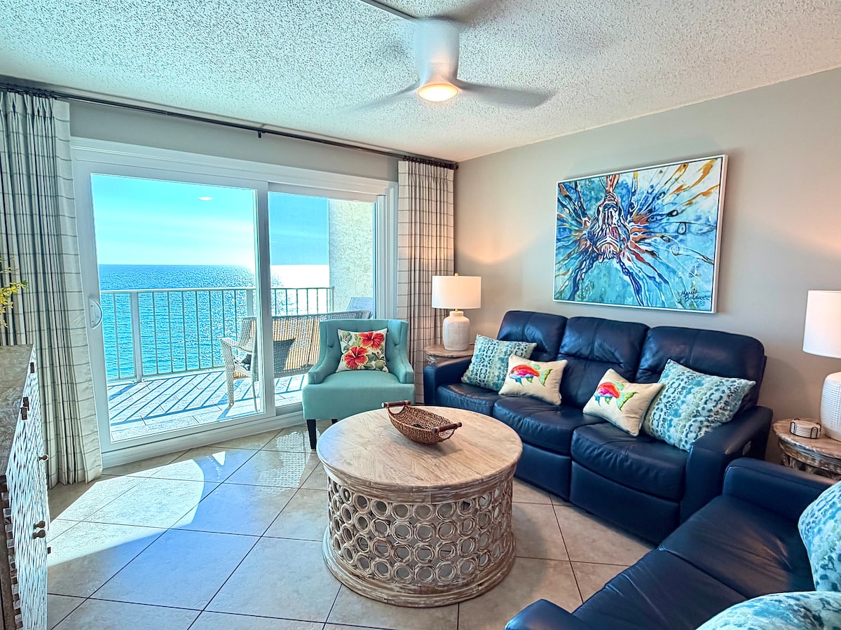 Enjoy the Beachfront serenity you deserve at The Emerald Escape - a fully renovated corner condo offering your relaxing getaway with all of the amenities you could wish for on your perfect vacation. Take in breathtaking sunrises, sunsets & sea life from the private balcony, stroll along the sugary white sands of the Emerald Coast, take a dip in 1 of 3 amazing pools located on the property (1 heated) with a poolside bar & grill, all while enjoying the comforts of home in this fully-stocked condo!