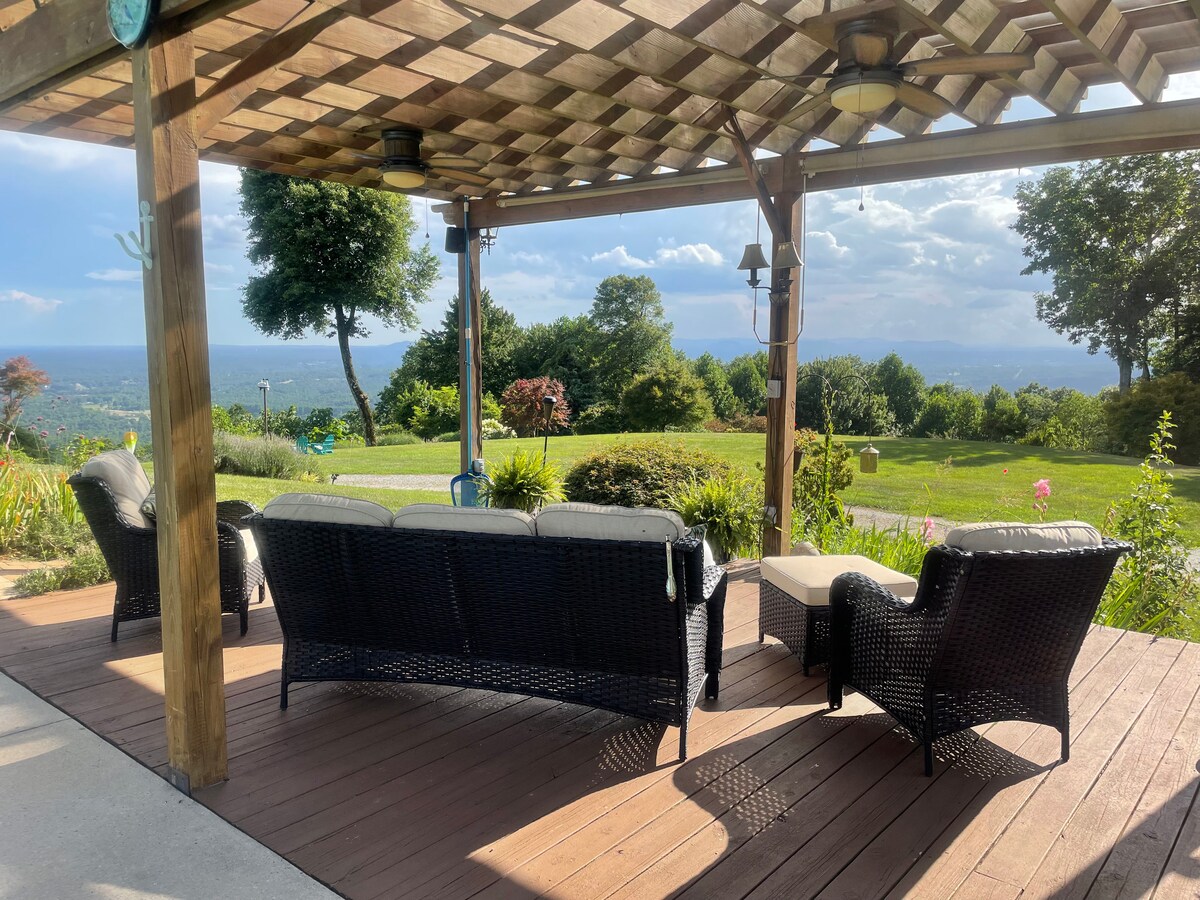Welcome to our private Guest House/Pool with stunning views and a nature-like experience. Located in the foothills of NC. Nestled high on ridge with fields, gardens and over 100 Japanese Maples. Our views are endless with amazing sunsets and sunrises Relax on our property overlooking lakes/valleys and long range views We will not utilize guest house area during your stay. Foliage around pool adds privacy. Includes Queen, kitchenette, 50” Smart TV, 610 count sheets, snacks and beverage basics