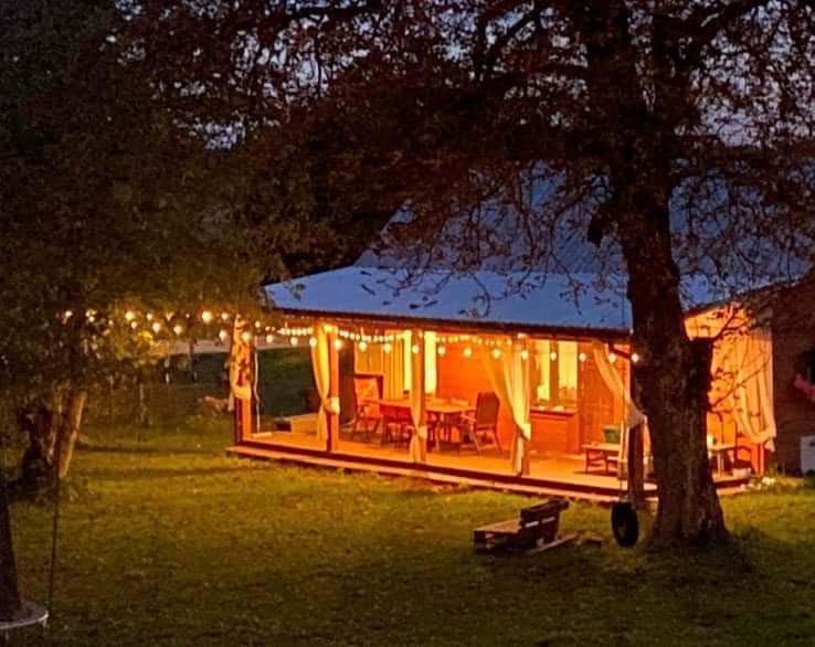 A unique luxury cottage designed for comfort and relaxation surrounded by nature. Enjoy dual heating (underfloor + HAVAC), panoramic meadow views, hardwood oak floors and and private terrace. Inside: fully equipped kitchen, continental Queen Size bed, and oversized rain shower. Relax in your private hot tub on the terrace (Mar–Oct). The cottage is secluded in a private garden on the edge of the meadows, Shared spaces includes hammocks, charcoal grill, fire pit, and outdoor seating.