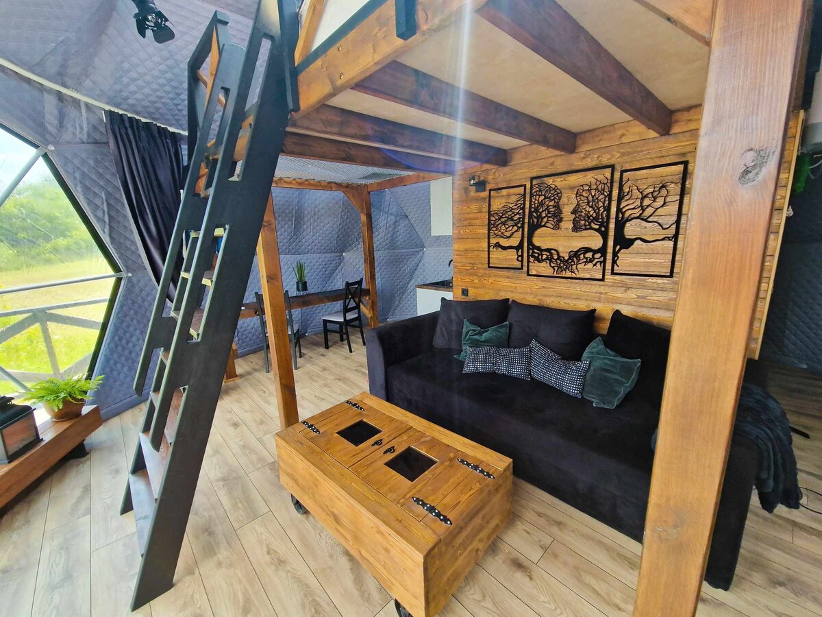 Przystanek Czasu to domek kopułowy, idealny na wypoczynek dla maksymalnie 4 osób. Teren jest ogrodzony, można spokojnie wypuścić zwierzaki, na zewnątrz znajdują się także: słoneczny taras, miejsce na grilla, czy zacieniony zagajnik pełen drzew. Domek jest klimatyzowany, bogato wyposażony, z dbałością o każdy szczegół. Zapraszamy w nasze progi, aby zobaczyć jak śpi się pod kopułą. Domek położony jest w cichej spokojnej wsi, ale blisko jest też Szczebrzeszyn, Zwierzyniec czy Nielisz.