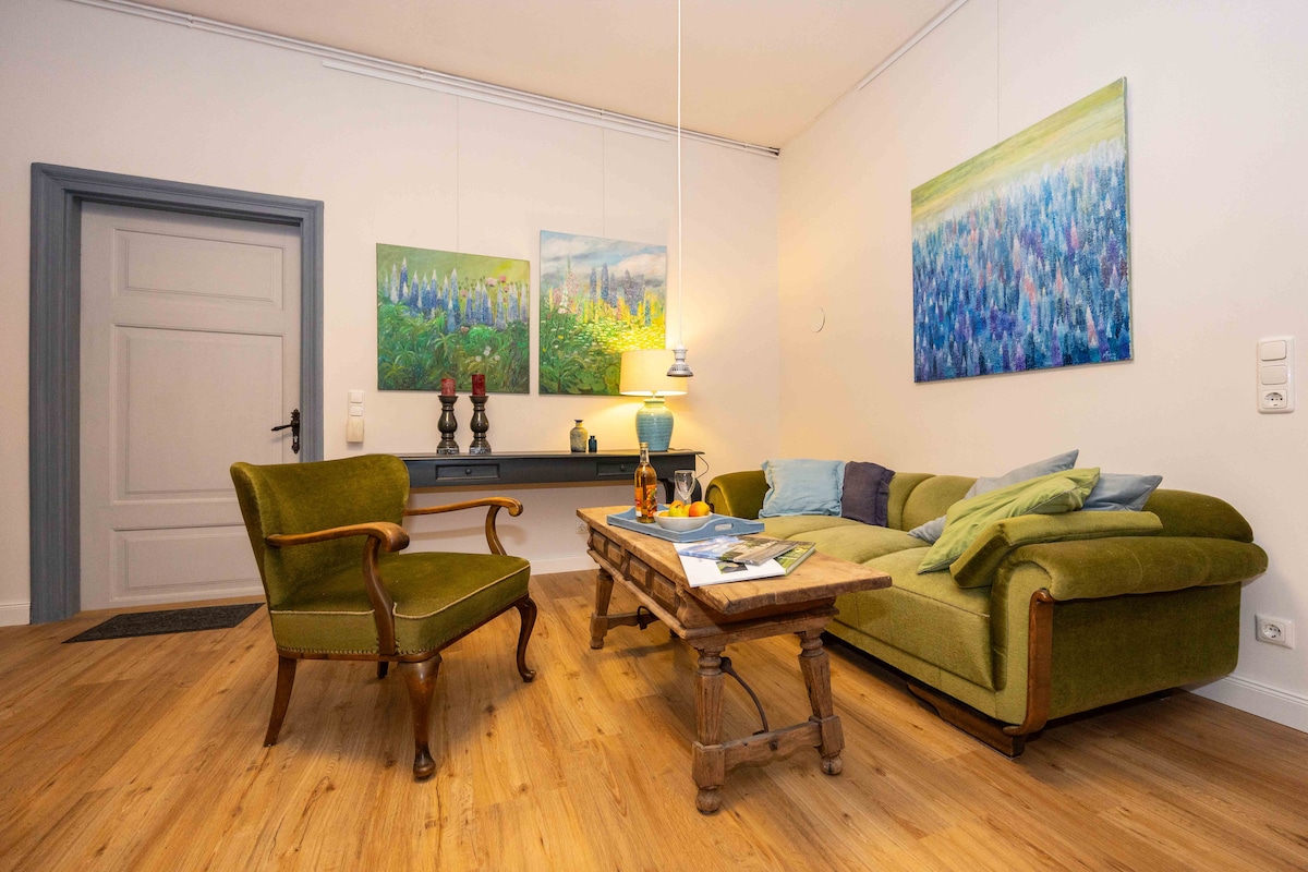 Frente a las puertas de Schwerin se encuentra nuestro edificio residencial de más de 100 años con un edificio nuevo contiguo con dos departamentos diseñados individualmente. El “Gardenview” es adecuado tanto para viajeros de negocios como individuales. Ubicado en el primer piso, ofrece un living luminoso con una cama tamaño king, un escritorio y un comedor pequeño con sillas altas. Una cocina contigua, así como un baño con ducha separado completan el departamento con vista al jardín.