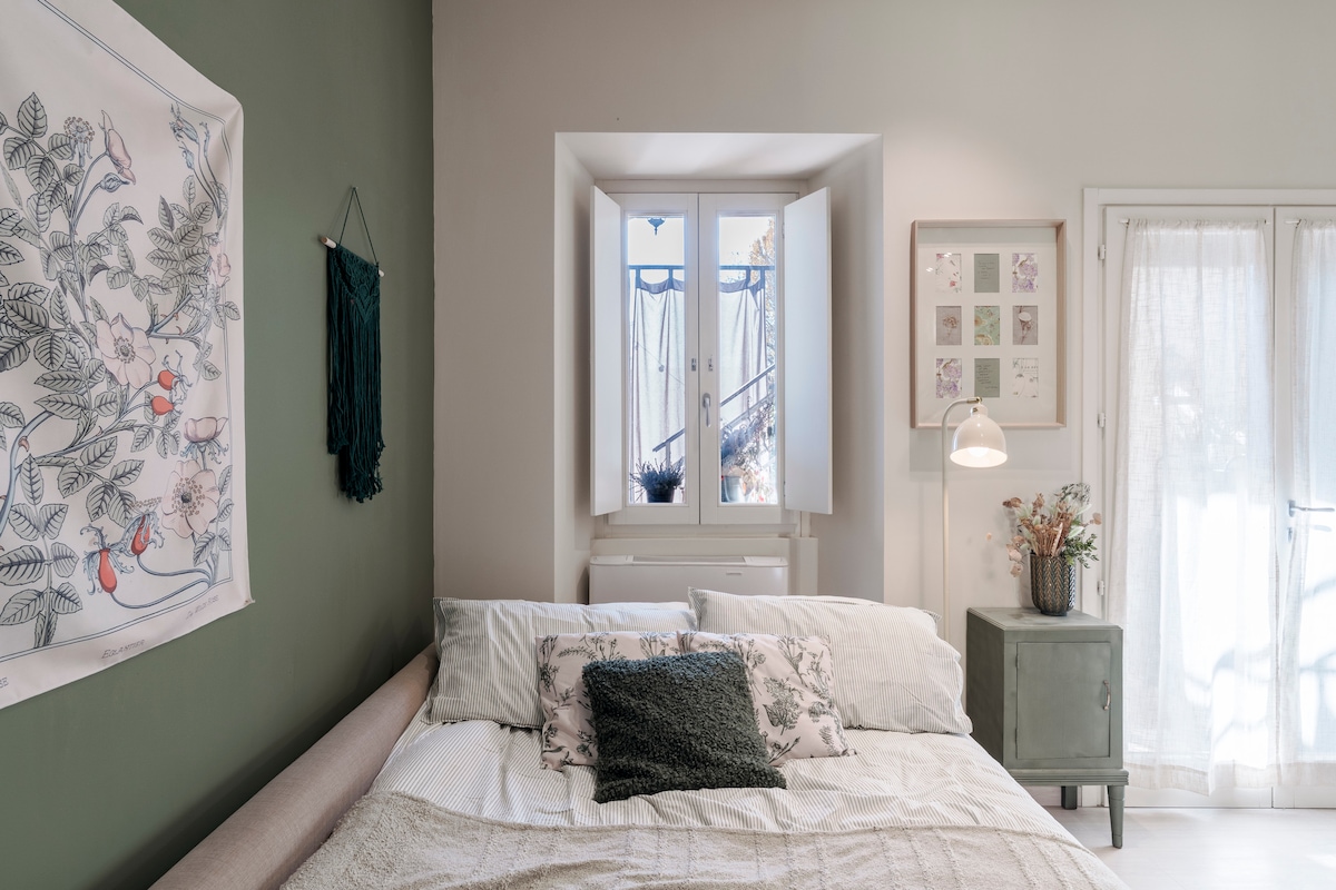 Questa luminosa mansarda è arredata con tutto ciò che serve per un piacevole soggiorno: una cucina spaziosa con l'occorrente per cucinare, induzione, microonde, Smart Tv, Netflix, wifi, cassa stereo Bluetooth, aria condizionata, lavatrice, un comodo letto matrimoniale sotto un meraviglioso affresco del XII sec. È disponibile l'intero appartamento al terzo piano senza ascensore, in centro, nel quartiere più vivo della città, a cinque minuti dalla metropolitana.