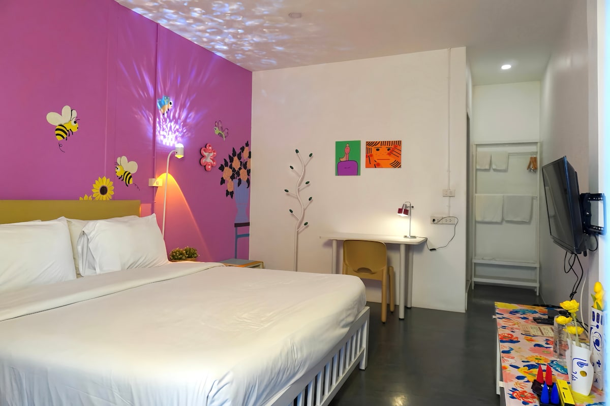 Suite es nuestra mejor habitación en Charlie House Pinklao – un hotel privado para viajeros de ocio económico. Aquí, tratamos a nuestros huéspedes con calidez y amabilidad. Mientras se hospeda con nosotros, siéntase libre de relajarse en una piscina privada, tomar el sol junto al pabellón tailandés y disfrutar de la auténtica comida tailandesa en el jardín. También tenemos recepción 24 horas. ¡Nuestro personal está más que dispuesto a ayudarte durante tu estadía!