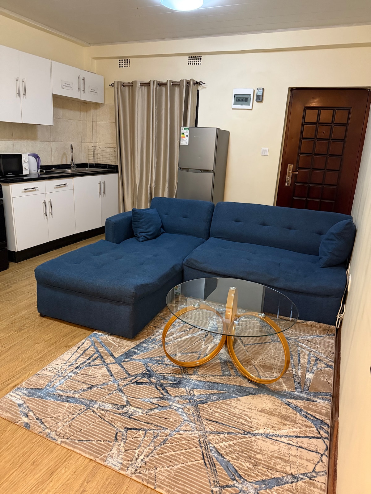 Elegante, un apartamento cómodo y seguro de una cama totalmente climatizada con acceso a la piscina y gimnasio con 3 centros comerciales con un radio de 2 km. Se proporciona ENERGÍA SOLAR DE RESPALDO. A unos 10 minutos del aeropuerto internacional Kenneth Kaunda y a 15 km del CBD. Instalaciones de alquiler de coches disponibles.